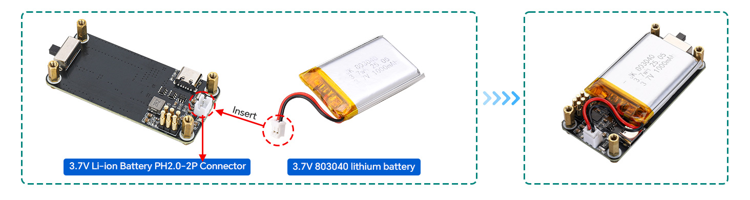 Connect 3.7V lithium battery to PH2.0-2P connector