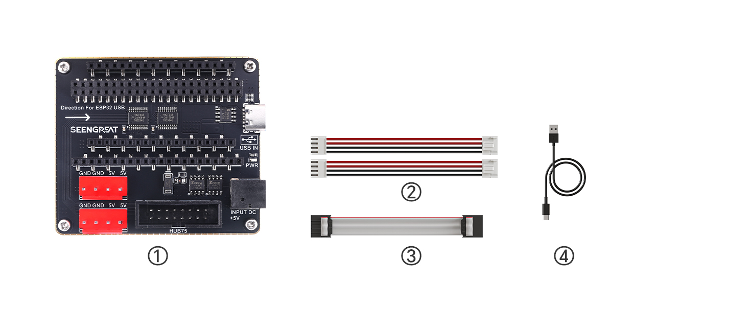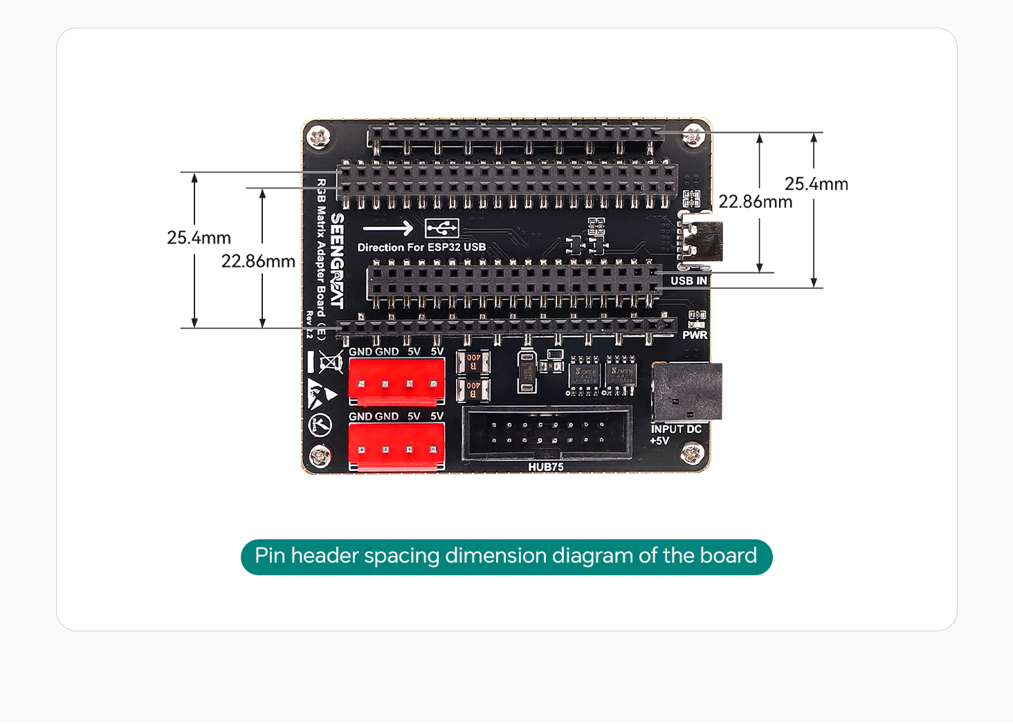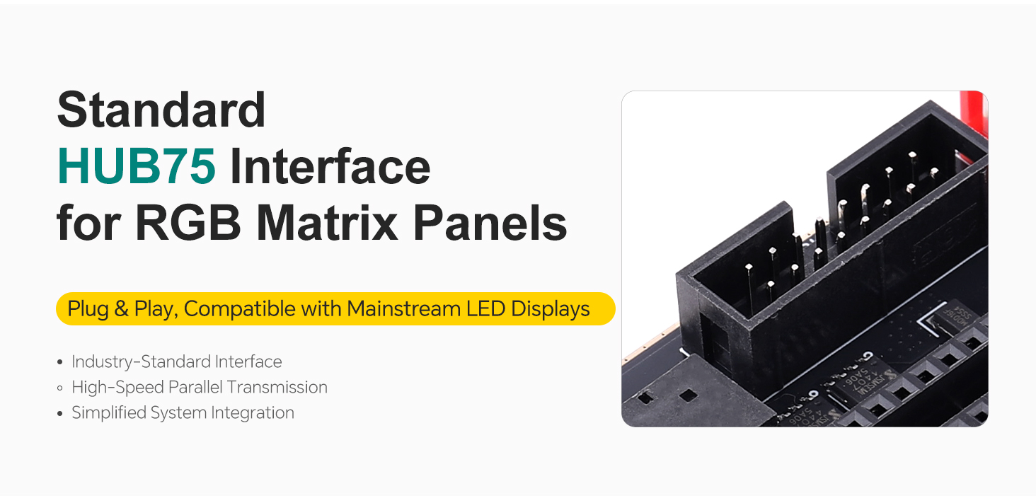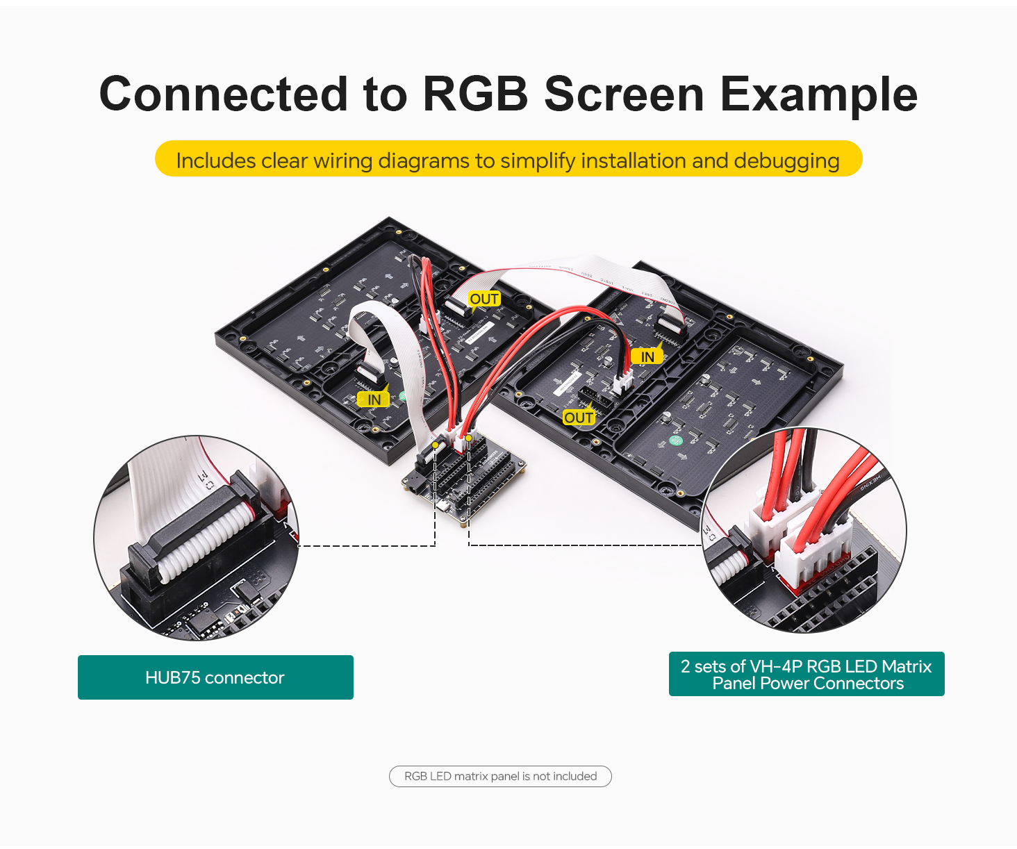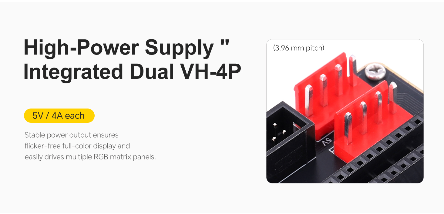 · Onboard two VH-4P (3.96 mm pitch) power connectors and HUB75 interface for RGB LED matrix panels
