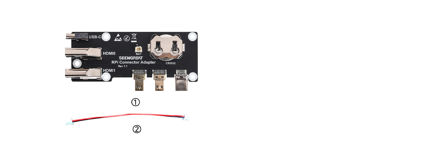 - CR2032 Battery Output Connector: Use the cable to connect to the J5 battery connector on the Raspberry Pi 5.