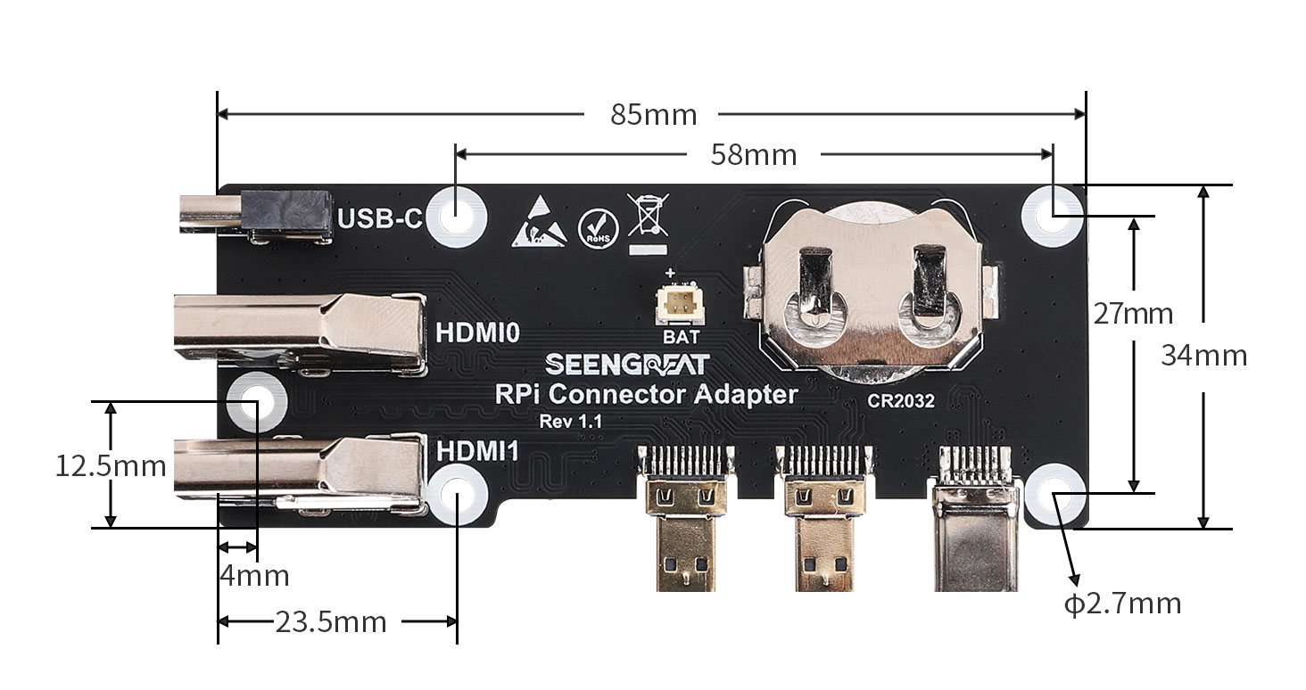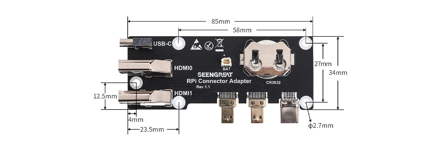 - Dual Micro HDMI Ports: Connect to the Raspberry Pi's HDMI interfaces.