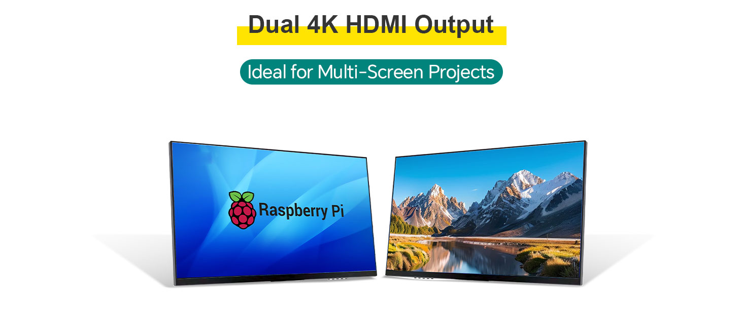 - Compatible with Raspberry Pi 5 and Raspberry Pi 4B, supports dual HDMI 4K output.