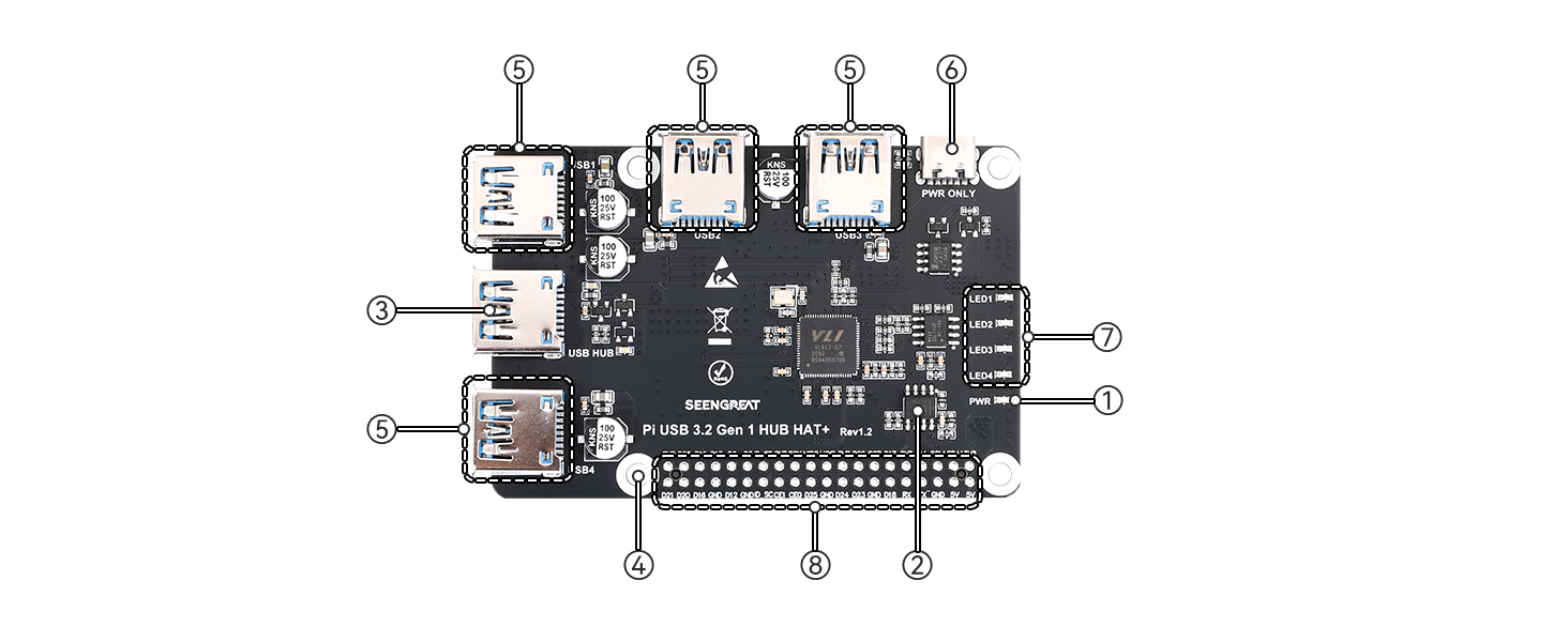 Model | Pi USB 3.2 Gen 1 HUB HAT |