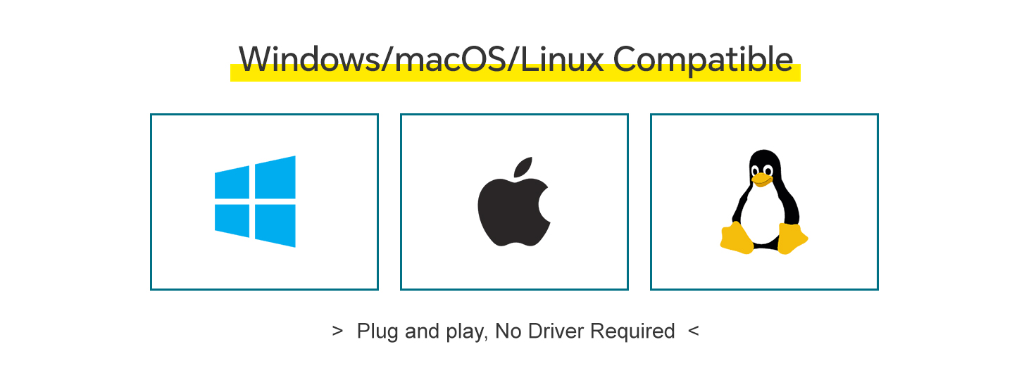 Plug and Play, no driver installation required. Compatible with Windows, macOS, and Linux systems.