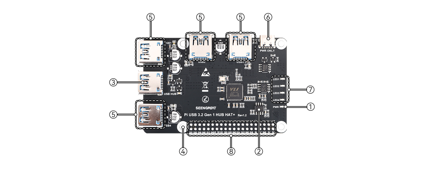 Model | Pi USB 3.2 Gen 1 HUB HAT |