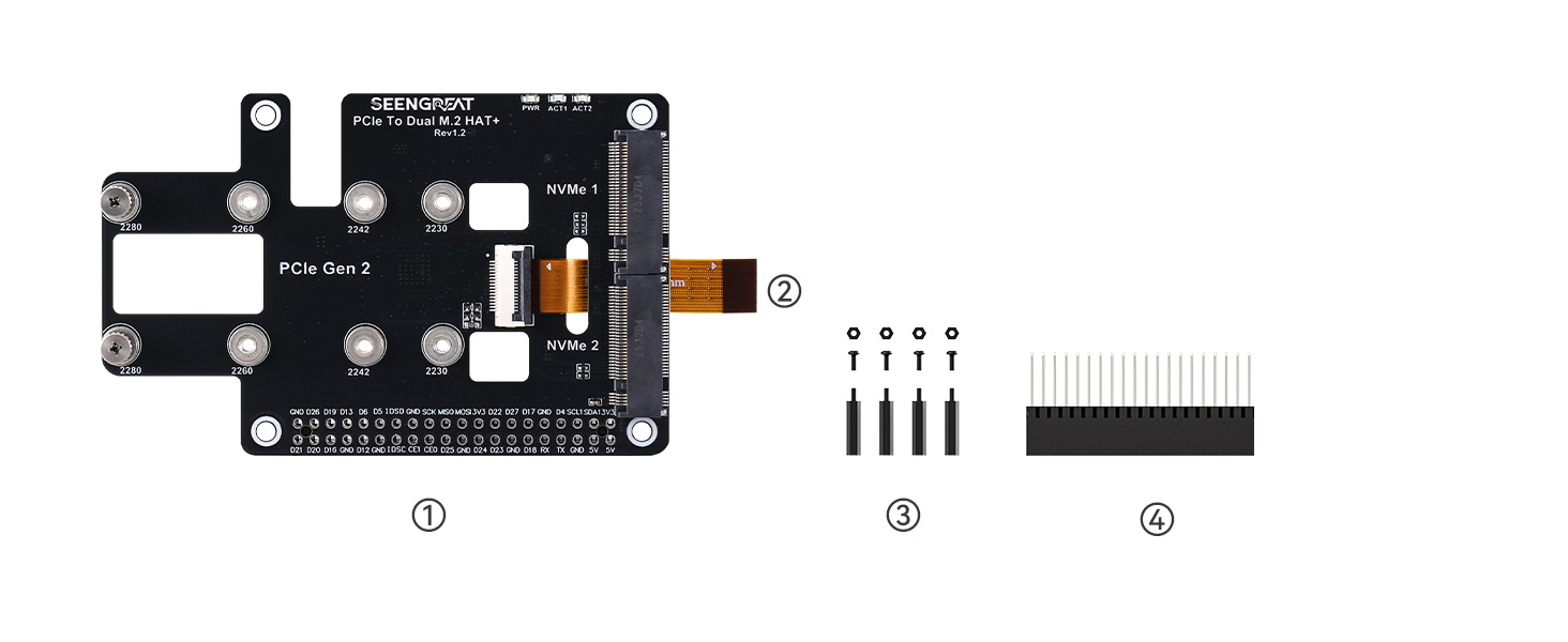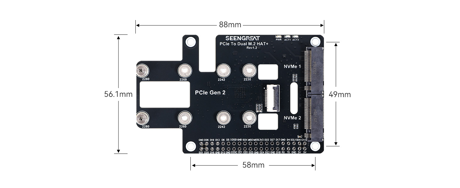 Compatible with 2280/2260/2242/2230 NVMe SSDs, HAT+ Standard