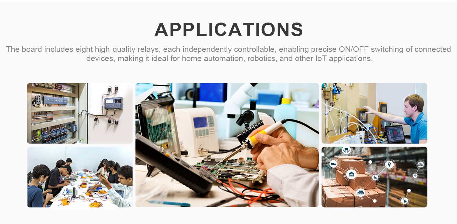 This 8-channel relay expansion board is designed for the Raspberry Pi / Raspberry Pi Pico series. It features a Raspberry Pi 40-pin GPIO header, making it suitable for Raspberry Pi mainboards and offering excellent versatility across multiple Raspberry Pi platforms. The board includes eight high-quality relays, each independently controllable, enabling precise ON/OFF switching of connected devices, making it ideal for home automation, robotics, and other IoT applications.