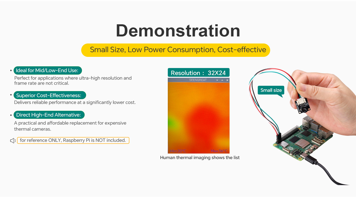 - Small size, low power consumption, 32 x 24 pixel infrared array