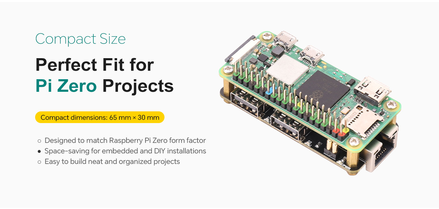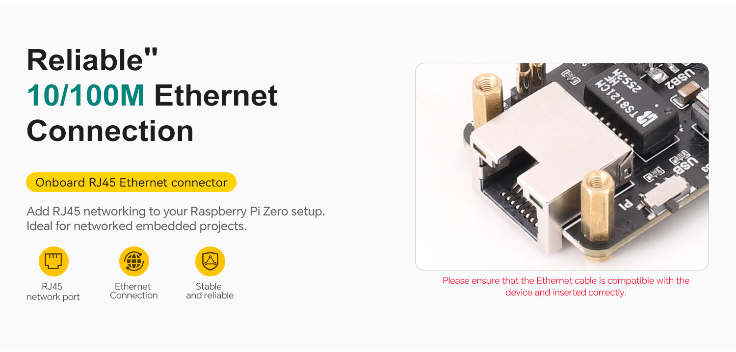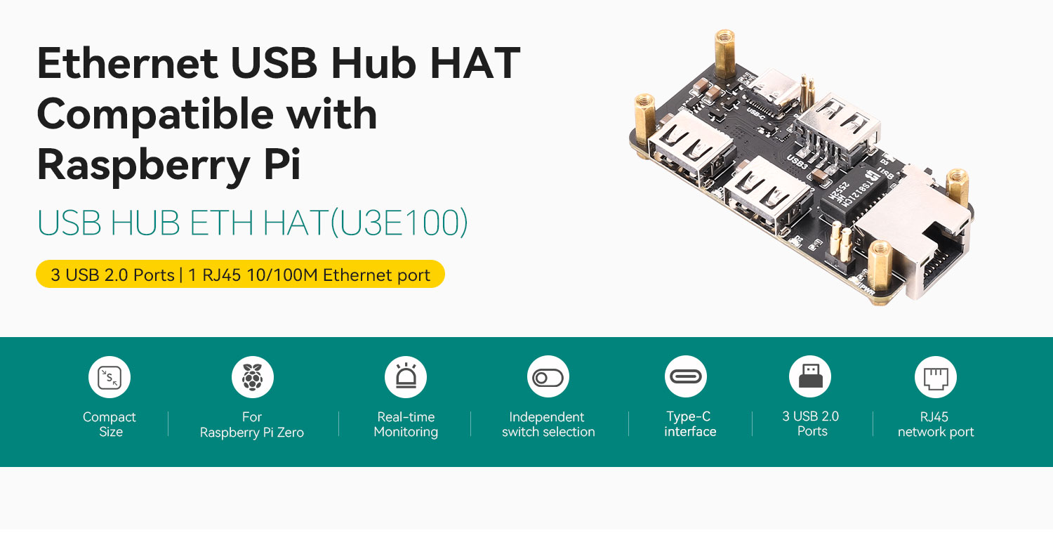 This USB HUB ETH HAT is specially designed for the Raspberry Pi Zero series. It offers strong expansion capability in a compact form factor that matches the Raspberry Pi Zero very well. With simple installation, it expands the Raspberry Pi USB interfaces and also adds 10/100M wired network connectivity, making it suitable for applications that require multiple USB peripherals and Ethernet access.