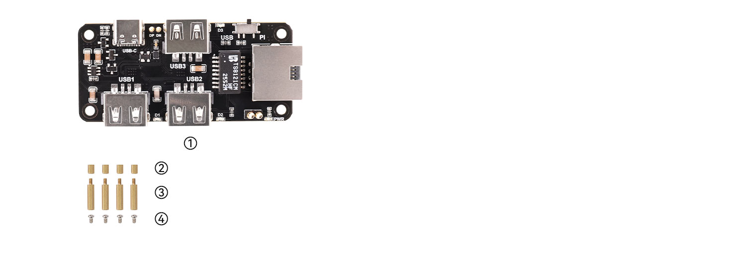 1. USB HUB ETH HAT(U3E100) Module X1