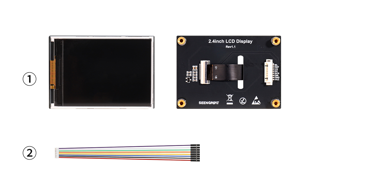 ① 2.4inch LCD Display (with M2.5*5 SMT nuts pre-soldered, featuring a 2.4-inch resistive touch screen as shown) × 1