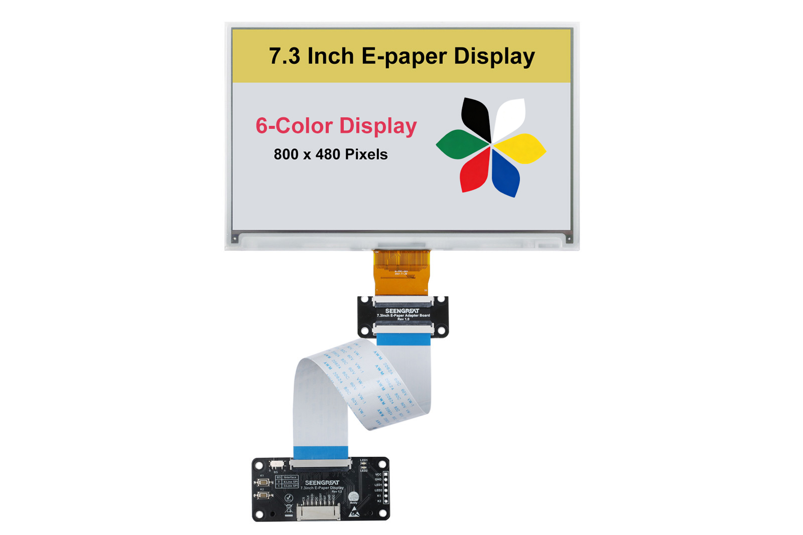 This product is a 7.3-inch seven-color(E6 is six-color) E-Ink display expansion module with a resolution of 800 x 480 pixels. It supports seven colors: black, white, red, green, blue, yellow, and orange(only for seven-color model). It is suitable for display applications such as electronic labels, photo albums, e-readers, and industrial instruments.