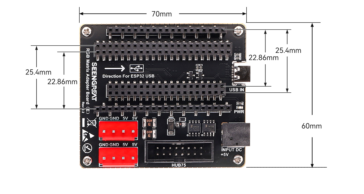 · Onboard two VH-4P (3.96 mm pitch) power connectors and HUB75 interface for RGB LED matrix panels
