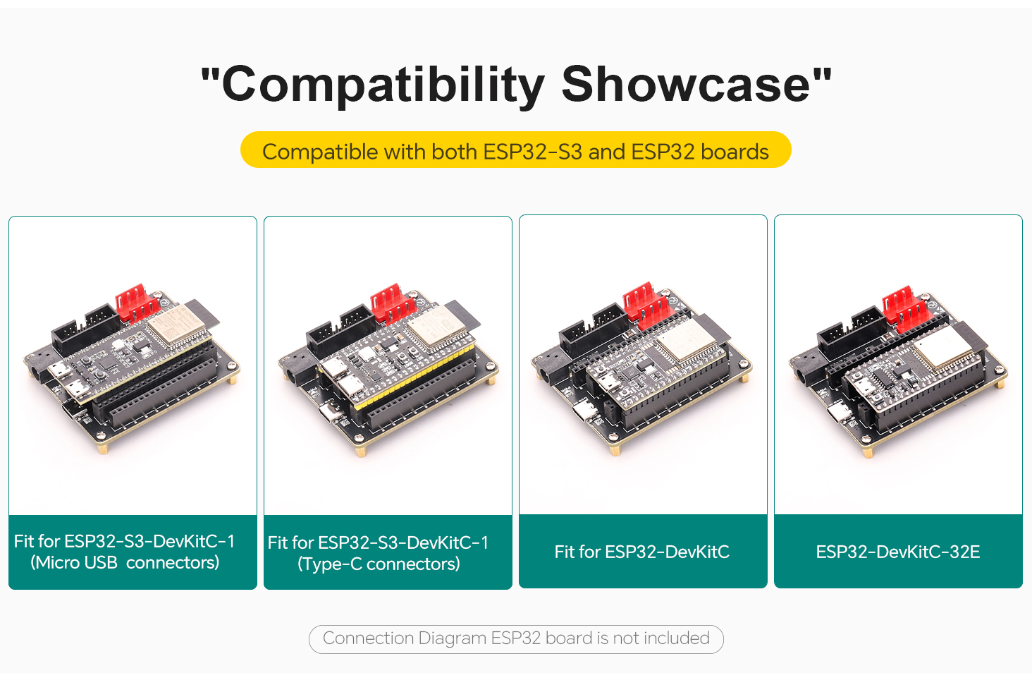 · Compatible with ESP32-DevKitC and ESP32-S3-DevKitC-1
