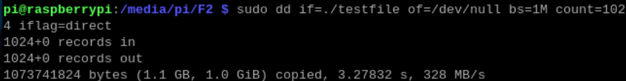 sudo dd if=./testfile of=/dev/null bs=1M count=1024 iflag=direct