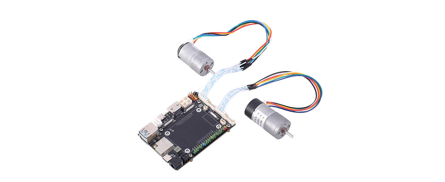 - The board also provides motor control interfaces, enabling control of up to four DC motors with encoders or four DC motors without encoders.